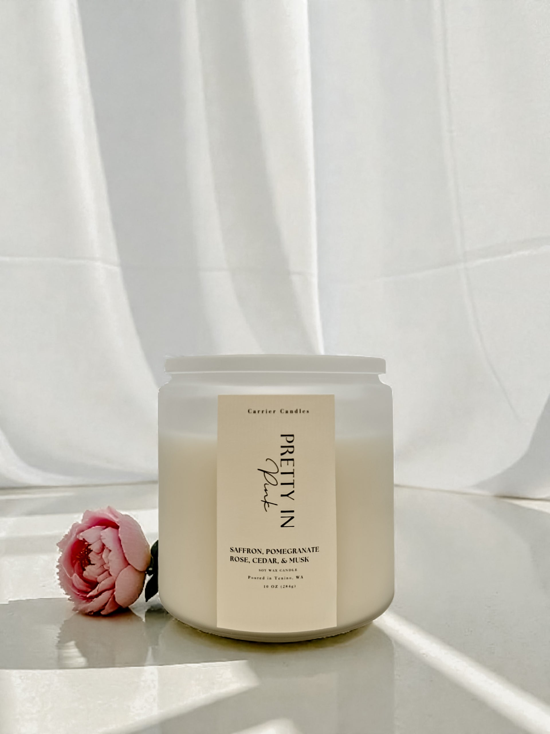 Pretty in Pink captures the feeling of spring just as everything begins to bloom. Warm saffron gently opens the scent, followed by juicy pomegranate that adds a bright, playful sweetness. At the heart, fresh rose petals feel soft and modern rather than powdery, while cedar and musk create a smooth, grounding finish. Light, romantic, and effortlessly pretty, this candle brings a fresh glow to any space.